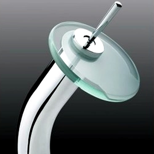 Single handle and single hole bathroom sink glass waterfall faucet. Solid brass faucet body. Sleek chrome finish. Two pieces of braided metal flexible hoses, pop up waste drainer optional. Dimensions 7.75″L x 13″H